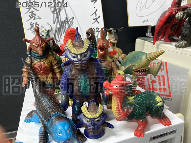 現在展示ブースが狭いので皆さんの見たい物をリクエスト受ける仕組みを採用したらブースの狭さがカバー出来るのでは無いか?と考え、最近は購入した展示品を可能な限り紹介する様に運営を切り替えました。2025年新ブースでは当館独自の『軍団展示』も披露します。同じ怪獣が20体~30体!色合いなどの個体差をみて頂くための当館独自の展示法です。迫力満点はお約束できます(笑)