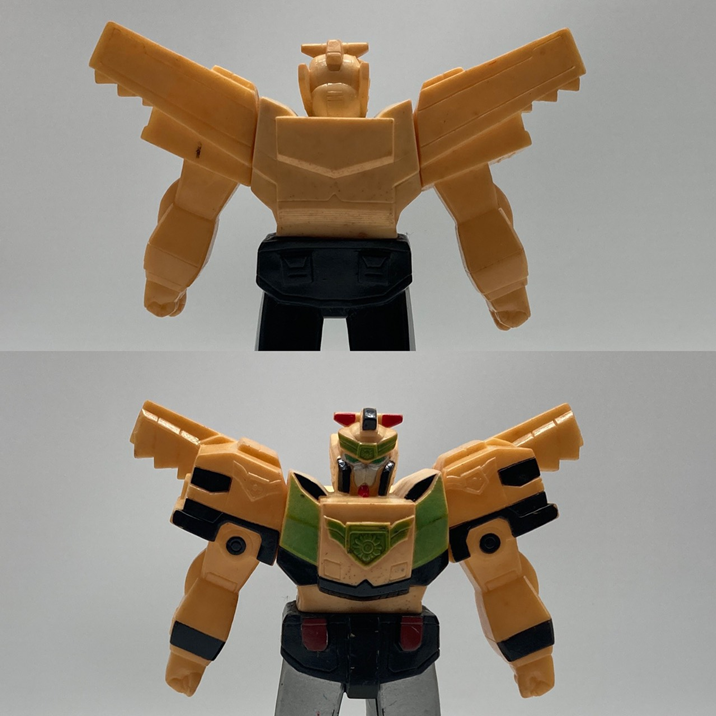 右側の黄色い個体は黄色と言うかクリアっぽい印象も受けます。ロッテのクリア作った後などで素材がクリアっぽくなったのか?クリアに色を付けすぎて黄色っぽくなったクリアなのか?そんな印象を受けました。どうしてそう思ったかと言うと以前窓際にゴドラ星人を置いて放置した際、赤が抜けてクリアになった事があります。