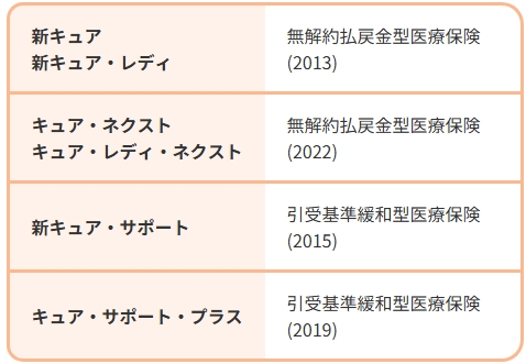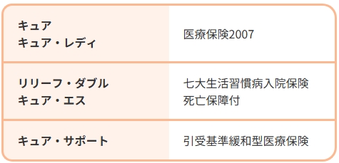 「がん保険※」「家族・夫婦型商品」「養老保険」