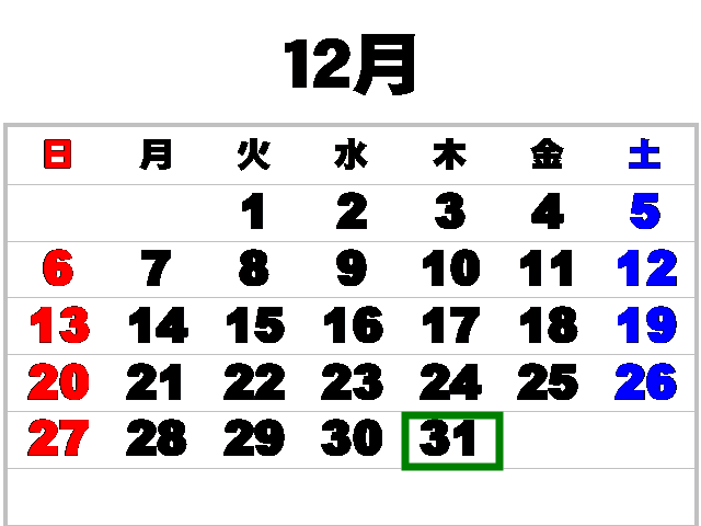 年末・年始のお休み