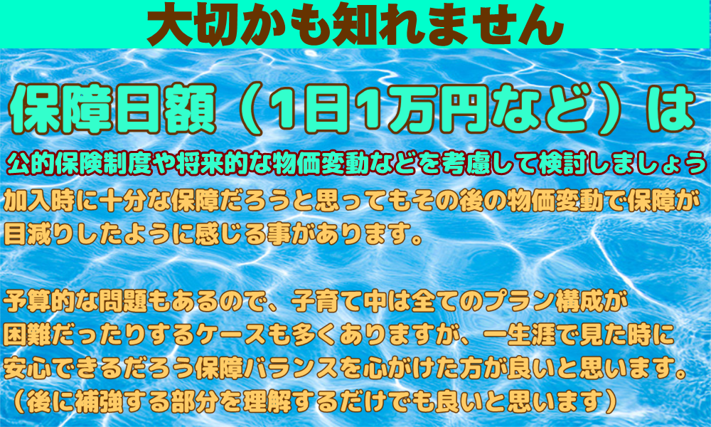 いずれの保険の場合も、ご親族のお話、心配事、身体の事、予算の話などの内容となるので話しやすい相性の良いプランナーを選ぶ事も重要だと思います。