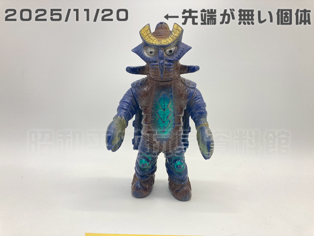 こちらのキングザウルスシリーズ/テンペラー星人は見かける商品の半数程度が頭中央にある触覚?部分が折れています。
