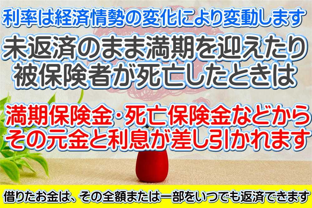 ・ 未返済のまま満期を迎えたり、被保険者が死亡したときは、それぞれ満期保険金